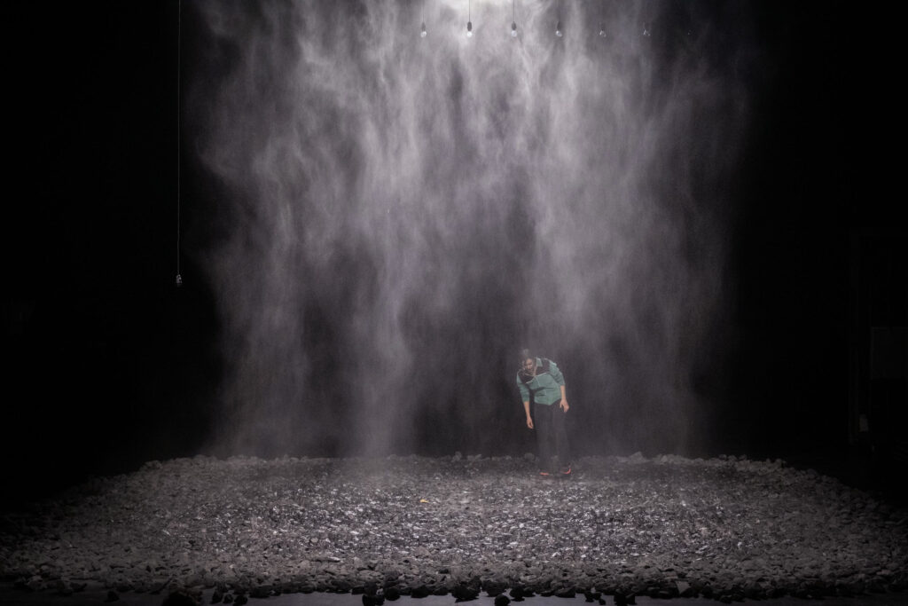 De aanwezigheid van de zee, die in Farhadi’s film symbool lijkt te staan voor een dreigend mysterie, wordt eveneens geëvoceerd aan de hand van grote, golvende plastic zeilen, een opblaasvis en een “vliegende” meeuw op een stok. Tegen het einde van de voorstelling doet een natte mist de spelers glinsteren van het water. Zelfs tot in de zaal voel je de vochtige kilte. Het onder water gelopen huis uit de openingsmonoloog gaat opnieuw door mijn gedachten, en ik vraag me af of het verwijst naar een andere film waarin het miskennen van de waarheid tot een tragedie leidt: Tarkovsky’s Solaris. In de prachtige slotscène ziet het hoofdpersonage Kris zijn bejaarde vader door het raam in diens woonkamer staan. Regen stroomt over hem heen, en doorheen het huis. Het beeld materialiseert de heimwee van Kris naar vroeger en zijn onuitspreekbare schuldgevoel ten opzichte van de mensen die hij heeft achtergelaten.