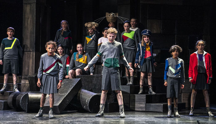 Wanneer het doek opgaat voor de eerste akte bevinden we ons in een donker bos, opgebouwd uit grote abstracte blokken. Tussen de bomen lichten de koplampen op van een klein autootje met daarin een uitgelaten stel – ze lachen, ze drinken, ze hebben iets te vieren. Via de autoradio vernemen we wat: meester Bert MacBeth (Bert Dobbelaere) staat op het punt om gepromoveerd te worden tot schooldirecteur. In de duisternis schieten kleine diertjes tussen de bomen door… Dan raakt de auto een van de wezens en blijkt het geen dier maar een kind te zijn – dood. Mevrouw MacBeth (sopraan Zofia Hanna) ziet haar toekomst als directeursvrouw in rook opgaan en sommeert haar man de auto in. De MacBeths maken rechtsomkeert, het lichaam zomaar achterlatend. IJzingwekkend is de inzet van de kinderschare (het Kinderkoor van Opera Vlaanderen) die toesnelt: “Gruwelijk! O moord!” Het koor roept om wraak en vanaf dat moment is het lot van de Macbeths bezegeld. De kinderen zullen hen het leven onmogelijk maken, en ze menen het: “Speel het hard. Killen! Villen!” Kom daar maar eens om als negenjarige.