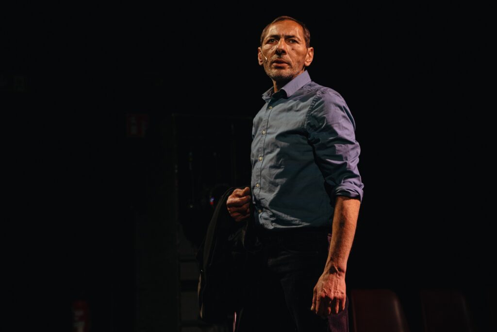 Dat het verdomd moeilijk is om uit die cyclus te breken, wordt door alle spelers onderschreven, maar is nog het meest voelbaar in de geladen afwezigheid van Laforce, die gedurende het repetitieproces opnieuw in de gevangenis belandde. Hij wordt op scène belichaamd door Aneca (tevens spelcoach voor de voorstelling), die Kevins verhaal draagt zonder het te claimen, door occasioneel met een brechtiaanse knipoog uit de rol te stappen. Zo gaat Aneca tijdens een geënsceneerd bezoekersuur in gesprek met een projectie van Kevin: ‘Voor wat je hebt gedaan zou niemand in de bak moeten vliegen’, bemerkt Aneca. ‘Wel als je al tien jaar in de bak hebt gezeten’, klinkt het gelaten. En dat de toestand er nog tien keer erger is dan voorheen.