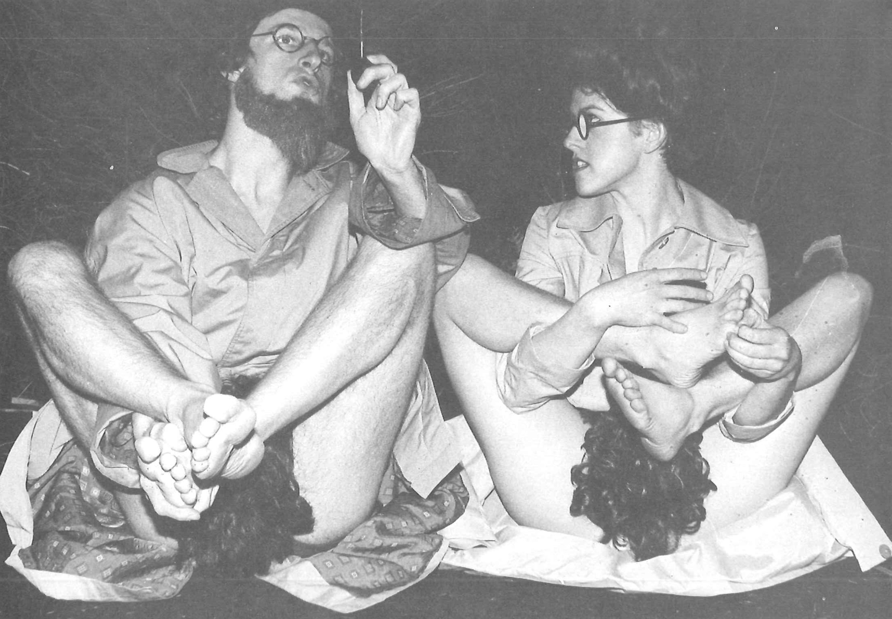 In de benadering van Sam Bogaerts valt het op hoe deze vertoning een Vlaamse versie is van een Duitse visie. Ik kan me zonder moeite voorstellen hoe hard en ongezellig de tekst bij de Schaubühne moet klinken. Die buitenlandse toonaard is verdwenen en het stuk klinkt op alle punten juist, zachter, ironisch en van bij ons. Dat wil zeggen dat Bogaerts op geen enkel ogenblik modieus heeft willen doen, maar steeds oog heeft gehad voor de menselijke inhouden die in de teksten opgesloten zitten. Elk personage is voor ons herkenbaar, niet in het minst omdat Bogaerts ze naar de Vlaamse taalcontext heeft herschreven. De twee burgermannetjes, Ceulemans en Van Dijck, bevolken de straten van Antwerpen, de verschillende dialecten verlenen niet alleen aan de acteurs hun natuurlijke autenticiteit (wat vooral in de punkscènes goed tot zijn recht komt), maar worden artistiek produktief in de figuur van Cypriaan, de kunstenaar. Luc D’Heu spreekt een soort Liers, dat ik met moeite kan decoderen. Zijn verklaringen over zijn kunstwerken blijven dan ook moeilijk te begrijpen. De communicatiestoornis tussen kunstenaar en publiek krijgt hiermee een onmiddellijke expressie, dank zij het gebruikte taalmateriaal.