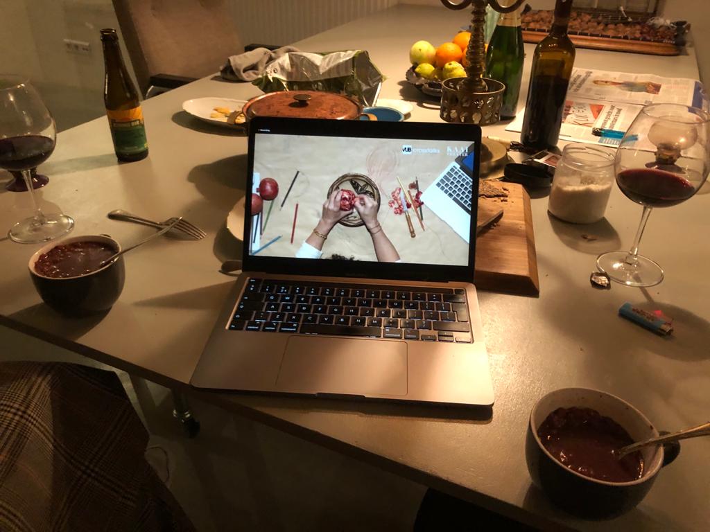 Shuruq: You described performing in the virtual space as ‘a balloon you set in the sky and you watch disappear becoming smaller and smaller.’ Initially Holy Cow & Pomegranate was meant to be performed physically with a live audience, but then with COVID-19 restrictions imposed on Belgium in the fall of 2020, you needed to re-configure it online.