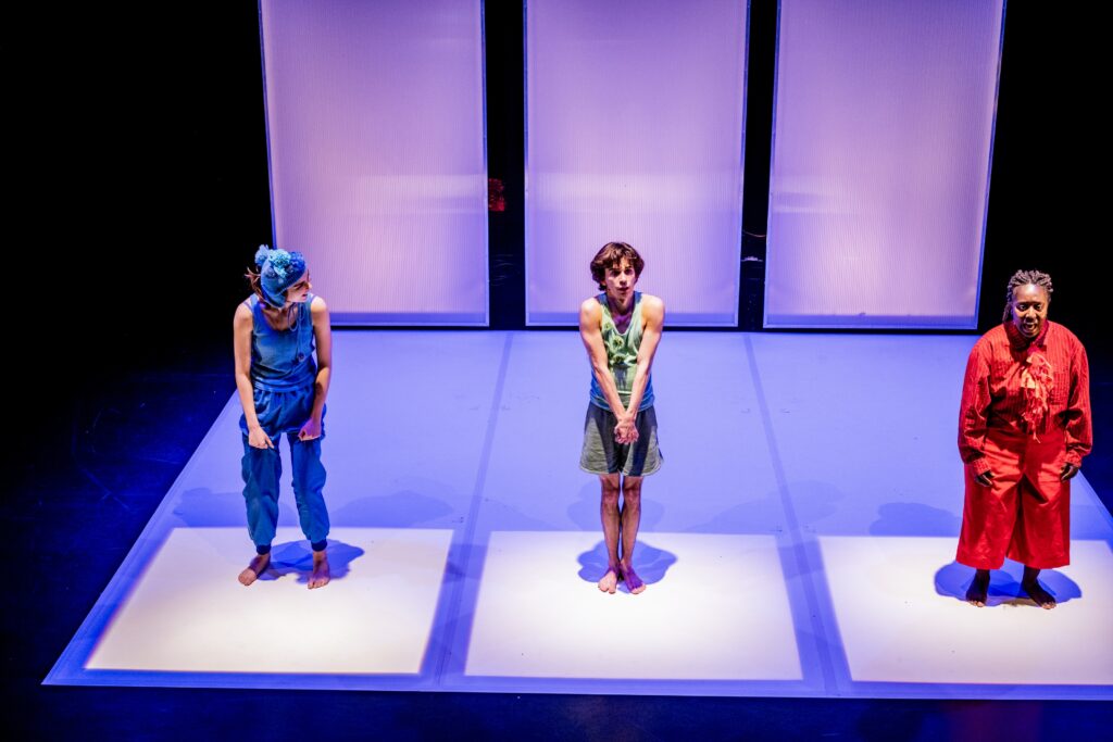 Naast deze scenografische en auditieve hoogstandjes, is het ook belangrijk om de genuanceerde lichamelijke kracht van Hellemans’, Sterckx’ en Kargbo’s acteerprestaties te benadrukken. Ondanks de bijwijlen pathetische, slapstick-achtige scènes — die een onnodige toegave zijn aan een kinderpubliek dat uiteindelijk weinig happig was op dit soort taferelen — slaagt het trio erin de interne wereld van hun personages door middel van hun lichaamstaal over te brengen, iets wat in dit stuk vol met onbenoemde, onuitgesproken emoties niet had mogen ontbreken.