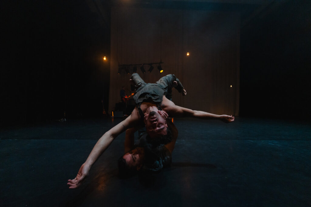 By the end of the piece the performers receive a standing ovation, I can’t hold back my tears and clap with my eyes closed. I hear women in the first row loudly whooping, shouting and giggling. Right after the applause dies out, two male voices behind me start talking about the muscle power required to perform the tricks on stage. The probability of injuries. As if they were discussing cars. I become uncomfortably aware of the dichotomy that is created by emotionally powerful performances. Through them, so-called negative feelings can be experienced in a safe environment because we live controlled lives where very little actually reaches the public space.