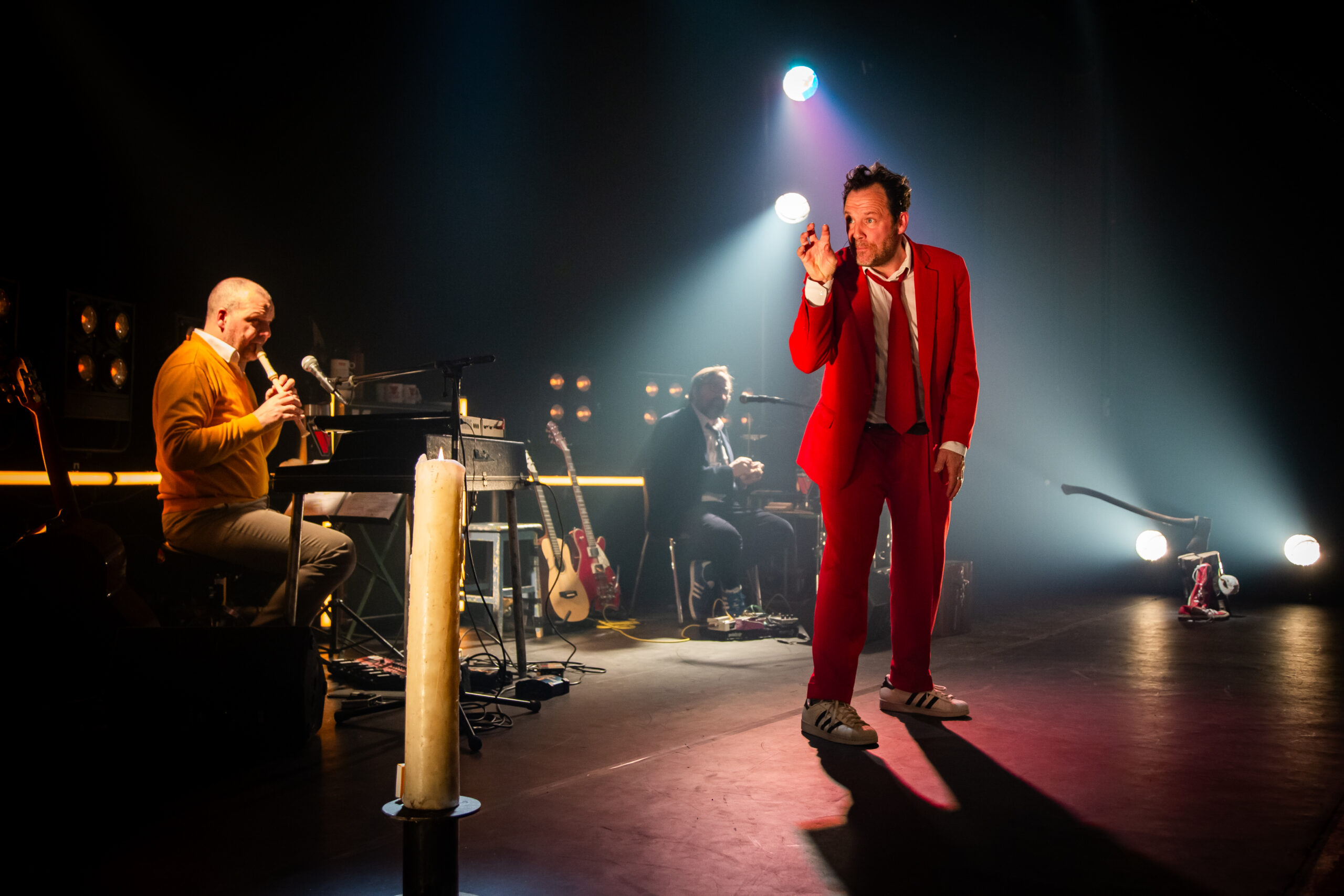 Johan Petit is daarom misschien in de eerste plaats een chroniqueur, in de traditie van Dario Fo. Die probeert in zijn vertelling het verglijden van de tijd te vatten en zo greep te krijgen op het heden. En dat heden is op vijftien jaar tijd best wel wat veranderd. Op twee punten in de voorstelling wordt dat duidelijk. Jowanneke gaat op kamp met het Vlaams Nationaal Jeugdverbond (VNJ). Hij wil de “beste Vlaams Blokker” worden, maar moet vooral zijn angst voor het primitieve, open toilet op de kamp-site overwinnen. Plots wordt de lach in de zaal iets minder uitbundig, en gaat de voorstelling schuren met de tijd van nu. Pas dan valt me op dat de kostuums van Petit en de twee muzikanten samen de Belgische vlag vormen. Later ontmoet Petit een jeugdvriend, ooit een new waver met de androgyne looks van Robert Smith, die zich opwindt – of beter: “opboeit” in het Algemeen Beschaafd Antwerps – over de identitaire zoektocht van jonge mensen. Tweemaal raakt Petit het heden van vandaag even aan, maar hij laat de mogelijkheid om de voorstelling iets meer stekels te geven links liggen. Wat zou er gebeuren indien Klein Jowanneke een beetje de John Massis van Johan Heldenbergh zou worden, indien hij zich écht eens zou kwaad maken? Of indien Klein Jowanneke een drarrie zou worden en zo een ander perspectief zou bieden op de Antwerpse lokale werkelijkheid?