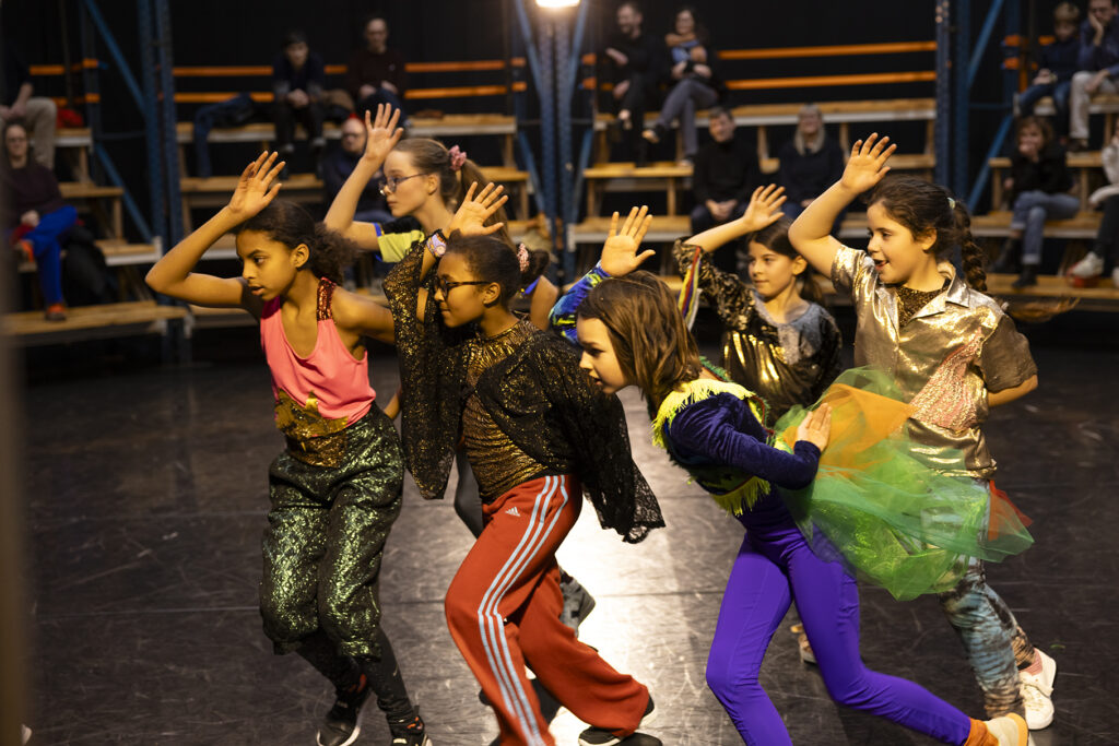De woordenschat van de voorstelling bestaat uit groepschoreografieën waar telkens een of meerdere dansers uit breken om hun eigen ding te doen. Sommige van die groepsfases hebben iets weg van een niet zo strak uitgevoerde Haka of stepdance, maar op hun sterkst werpen ze je terug naar het hypnotiserende op en neer gespring uit Jan Martens’ The Dog Days Are Over. Als planeten zwermen de kinderen om elkaar heen. Sommigen houden zich rustig in het centrum van de kring, anderen nemen hun tijd om langzaam voor het publiek rond te draaien als prima ballerina’s in spe, duidelijk genietend van de aandacht. Ze spelen met contrasten tussen hoog en laag, hard en zacht, tussen versnellen en vertragen, vallen en opstaan.