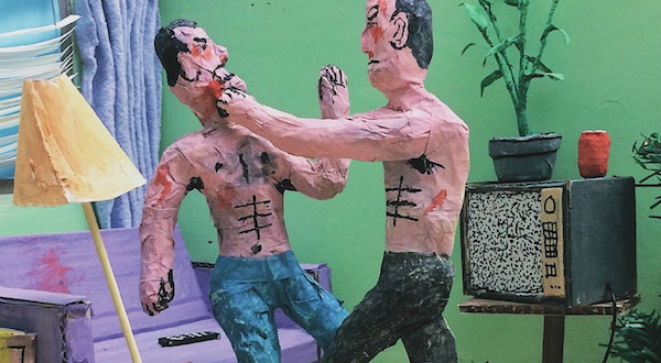 Het gekke is dat, door er zo naar te kijken, ook het onbehagen verdwijnt rond de inhoudelijke ‘leegte’ van Laguna Beach. Alsof het ‘pratende’ theater – de laatste jaren? – sterker is verknoopt geraakt met de eis tot een mededeling dan de beeldende kunsten, die minder worden afgerekend op hun vormelijkheid. Van Laguna Beach kan ik wel het inventieve gebruik van animatie analyseren, maar daarna schiet ik in paniek, want hoe interpreteer ik dat alles, wat betekent het? In een recente brief in rekto:verso stelde auteur Gaea Schoeters iets gelijkaardigs vast voor de literatuur – ik parafraseer nu – namelijk dat onderwerp en ‘inhoudelijke urgentie’ van een boek tegenwoordig sterker zijn succeskansen bepalen dan stijl of fictionaliteit. Kortom, dat we tegenwoordig allemaal misschien net iets te hard geprikt zijn op ‘relevante inhoud’.