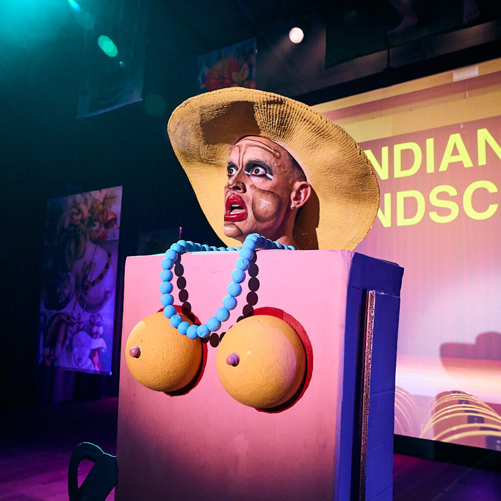 Dat gebeurt ook haast letterlijk wanneer Pablo en Federico zich (fysiek) terugtrekken van de scène om een geprojecteerde video te laten spreken. Daarin worden beelden van een fictieve, cliché-oubollige kunstdocumentaire – inclusief de typische ‘semi-bevlogen’ intonatie van de presentator of presentatrice hier gespeeld door Pablo en Federico, opnieuw met voice over – vermengd met beelden van beiden terwijl ze met een groepje kinderen collage’s maken, drag make-up aanbrengen, performen, verhalen vertellen. Op het strand, in een theaterzaal, in een slaapkamer, of in een atelier: het rollenspel gaat verder in dit videowerk, dat opnieuw verschillende media combineert. De kinderen, de neven en nichtjes van Pablo en Fede, zijn ook de oudere neven en nichten van Monica – het aangekondigde kind van beide performers. In een groeiend aantal landen zou drag met en voor kinderen opnieuw tot morele relletjes leiden, maar hier wordt op een ontwapenende manier getoond dat het in essentie gaat om een spel, om een contact houden met de potentialiteit – de reeks aan mogelijkheden – en verbeelding die onze vrijheid is. Het ons eigen maken van die potentialiteit in hoe we zijn en ons tonen: dat is representatie. Daar zit naast een kracht ook een zeker onschuld en naïviteit in. De kinderen dragen, net als Pablo en Federico, een soort nachtjapons, en de tedere toon van sommige verhalen, heeft ook iets van een verhaaltje voor het slapen gaan.