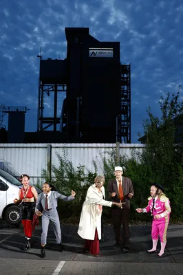 In een slotscène verschijnt een deus ex machina, het personage X (Joep van der Geest) in een overall van de asfaltfabriek. Misschien een reïncarnatie, maar ik wil niet teveel spoilen. De verrassing (die ik niet navertel) werkt niet meer in de storytelling van vandaag, dergelijke figuren kunnen geen beslissende draai meer aan de werkelijkheid geven. De anderen, de overlevenden, zij verzinnen hun eigen einde, vervuld van horror. Het is de kater die schrijnt in ieders maag en hoofd, na een psychedelische trip. Want het duurde een tijd, na het nuttigen van paddo’s op een Noord-Europese ferryboat (of gewoon ter plekke, tijdens deze herdenkingsdienst), voor deze komedianten weer tot enige helderheid in staat waren, ze hebben het ‘feest’ zelfs even stilgelegd, zodat wij een slok water konden drinken en zij de rook in en rond hun hoofd konden wegjagen. Maar de figuurlijke rook is blijven hangen, zoals vandaag ook de meest mensonterende werkelijkheid, grondig gedocumenteerd, door zogenaamd verantwoordelijke mensen als fake kan worden weggezet. In die zin legt Not Quichot, met de vragen over waarheid en werkelijkheid die het suggereert, een ziekte bloot, een ziekte van de tijd. In die demonstratie kan hilariteit ontstaan, veroorzaakt door gigantisch veel spelplezier, maar onvermijdelijk eindigend bij fatalisme – of een variant daarvan, doofheid. Cervantes heeft de illusies van de vroege Moderniteit blootgelegd, door de ziekelijke nostalgie naar (illusoire) ridderidealen als hefboom, als eye opener te gebruiken. Bij HZT proberen ze een fatale klap uit te delen aan de psychedelica als trigger voor wereldverbetering, als genereuze portier bij de doors of perception. Hun anti-intellectueel discours komt echter altijd weer terug, dit keer niet als een klucht, maar als een treurspel, een zwarte tragedie zelfs. Ondertussen is het helemaal donker geworden op het plein naast de asfaltfabriek.