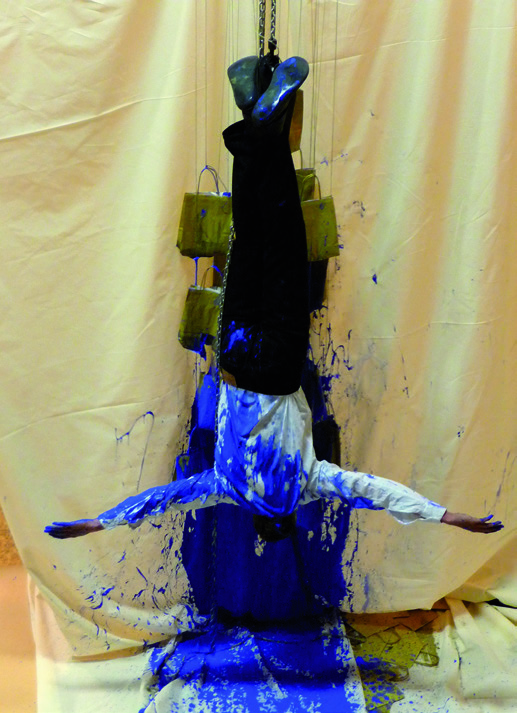 ‘A chance meeting of Yves Klein and Gordon Matta-Clark on the gold plated Corps of James Lee Byars, 6.VI.2009’, foto An Debie © Galerie Annie Gentils en Danny Devos