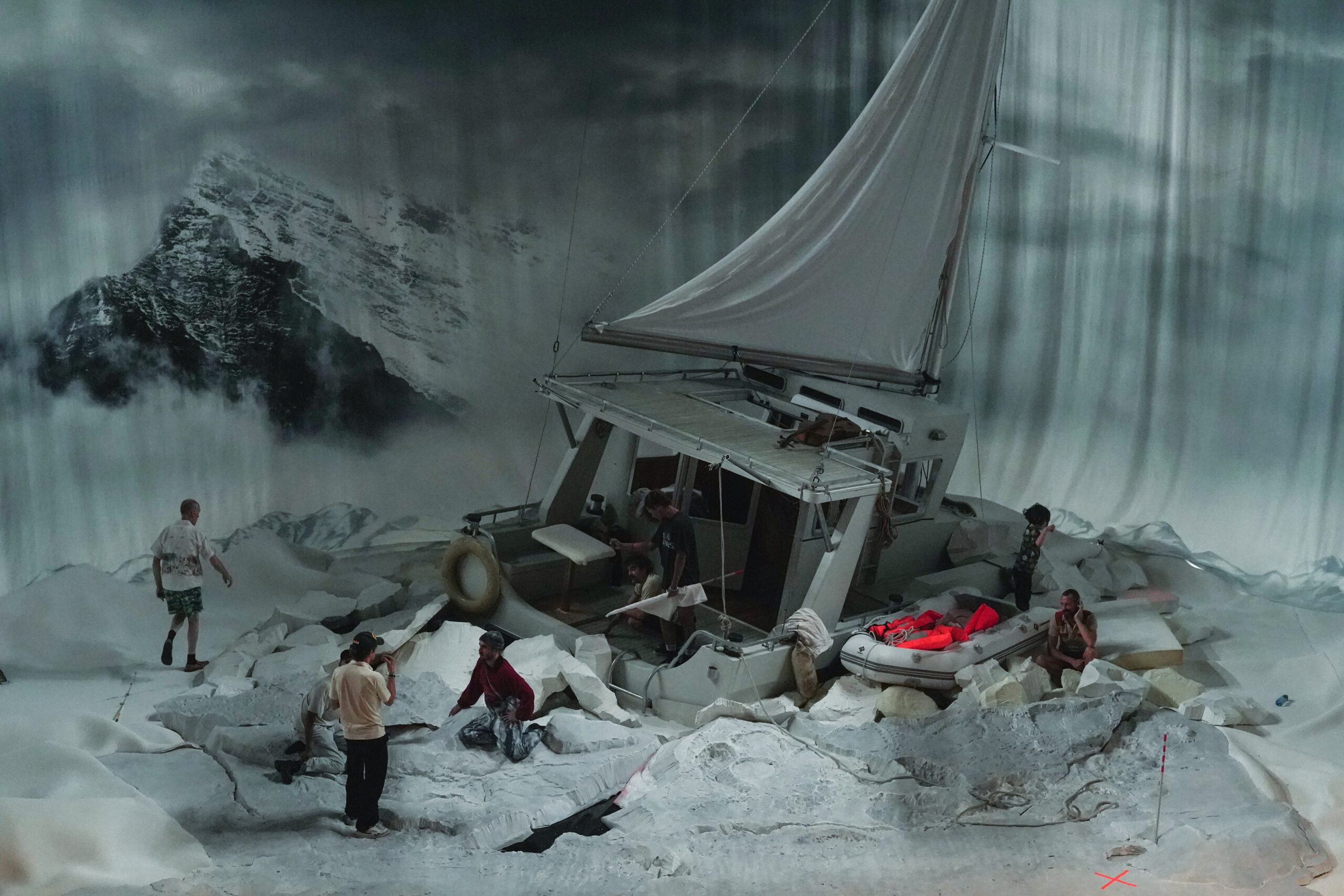 Zo krijgt het trauma van de regisseur een andere betekenis, die misschien een opstap vormt naar verlossing. Maar hoe moet het verder met zijn positie? Het repeteren gaat door, tot de acteurs spelen dat ze ontsnappen in een kleine reddingsboot, waarbij ze het kind achterlaten tussen het ijs. Wat betekent dat voor de maker? En wat is theater nog zonder regisseur?