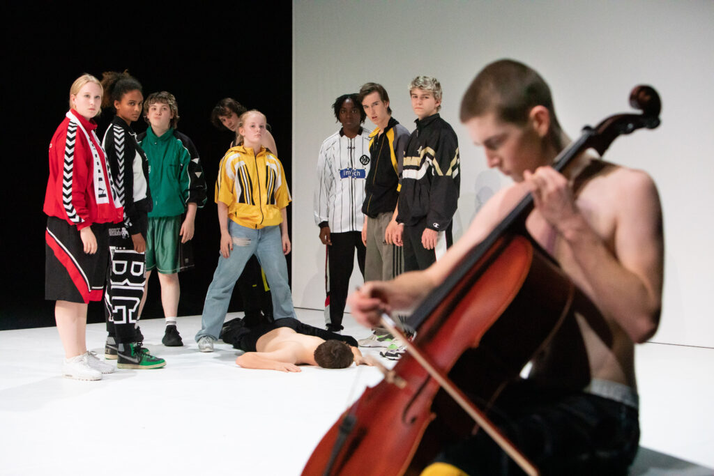 De vorige stukken van Reut Shemesh focusten op culturele en religieuze vraagstukken, vooral vanuit haar eigen achtergrond als Israëlische choreograaf in Europa. Met dansvoorstellingen zoals LEVIAH (2015) en ATARA (2019) onderzocht ze de omgeving waar ze in opgegroeid is. In ULTRA gaat het deze keer niet over haar eigen achtergrond, maar over iets anders: mannelijkheid in een wereld waar genderdynamieken uit balans getrokken worden. Op de website van fABULEUS staat in de tekst over ULTRA de quote ‘It is harder to be a man today, and in many ways, that’s a good thing’. Het komt uit een opinie-artikel in The Washington Post van Christine Emba, een Noord-Amerikaanse columinist en schrijfster. De inspiratie voor het thema haalt Shemesh uit het gedrag van Duitse ultra voetbalfans en uit de vraag welke kwetsbaarheid daarachter schuilgaat. Ze maakt deze nieuwe voorstelling met 10 jonge performers van verschillende genders. De oudste is 20 jaar oud, de jongste 16 jaar.